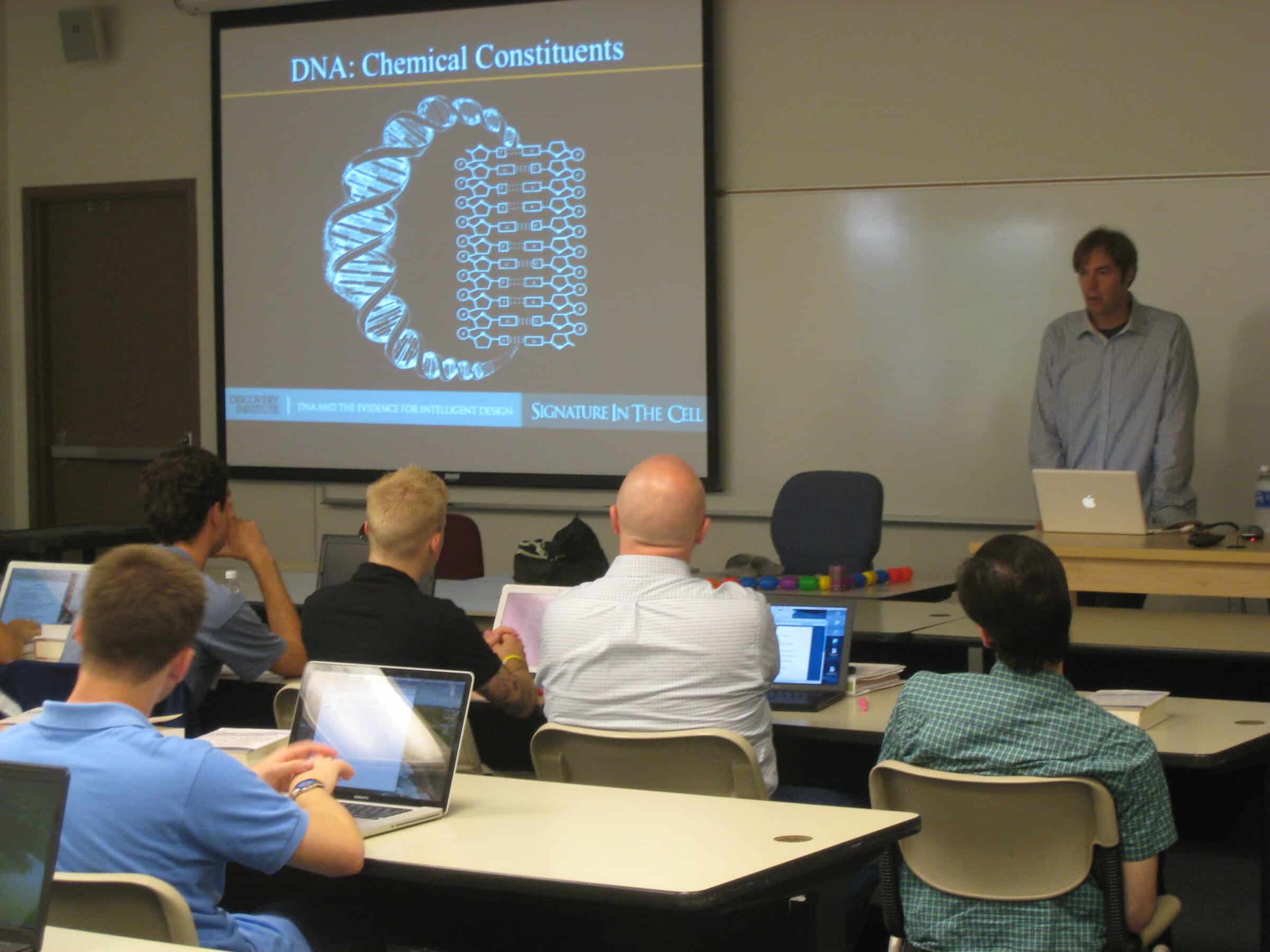 “It was like taking a drink from a fire hydrant,” one student said. The schedule is a demanding one, packed with lectures and readings. The material covered in the course goes far beyond an overview and into the technical discussion of intelligent design and Neo-Darwinism. Students learn from Discovery scientists about methods of design detection, the intricacies of DNA and information processing in the cell, quantum theory and materialist metaphysics, and the moral implications of Darwinism.