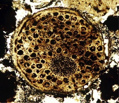 The embryos bear some outward resemblance to simple colonies like Volvox, spherical multicellular organisms that undergo sexual reproduction and have flagella on their outsides. The fossilized colonies were, as far as the discoverers could tell, unflagellated. Inside the spherical aggregates, nested groups of cells reminded the discoverers of Russian dolls; they called these “matryoshkas.” They also found evidence for differentiation between germ cells and body cells. They believe that some cells underwent programmed cell death (apoptosis); this also occurs in Volvox, but that simple colonial organism is thought to have evolved much later in the Permian or Triassic. As we reported in June, apoptosis dates at least to corals at 550 million years ago, and has been virtually unchanged since.