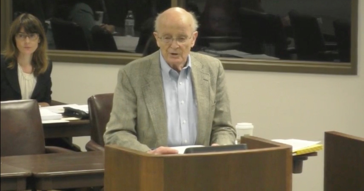Photo: Ide Trotter, PhD, Princeton-trained chemical engineer and Darwin skeptic, delivers testimony before the Texas State Board of Education.