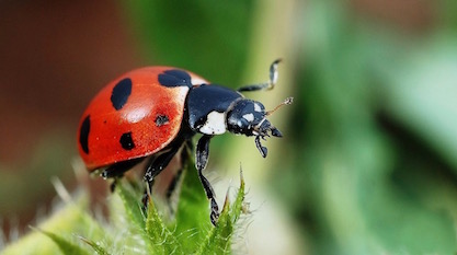 What child hasn’t picked up a ladybug, aka ladybird beetle, and quoted the nursery rhyme, “Ladybird, ladybird, fly away home” as she watched it take off into the air? Or perhaps we are dating ourselves. Anyway, people like ladybird beetles because of their bright red colors and spots, and the fact that they eat garden pests. Now, thanks to these favorite insects, more design evidence has come to light.