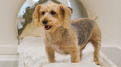 They trained dogs to be still for an MRI machine, which by itself is no trivial accomplishment. From the New York Times story, a Q&A with neuroscientist Gregory Berns: