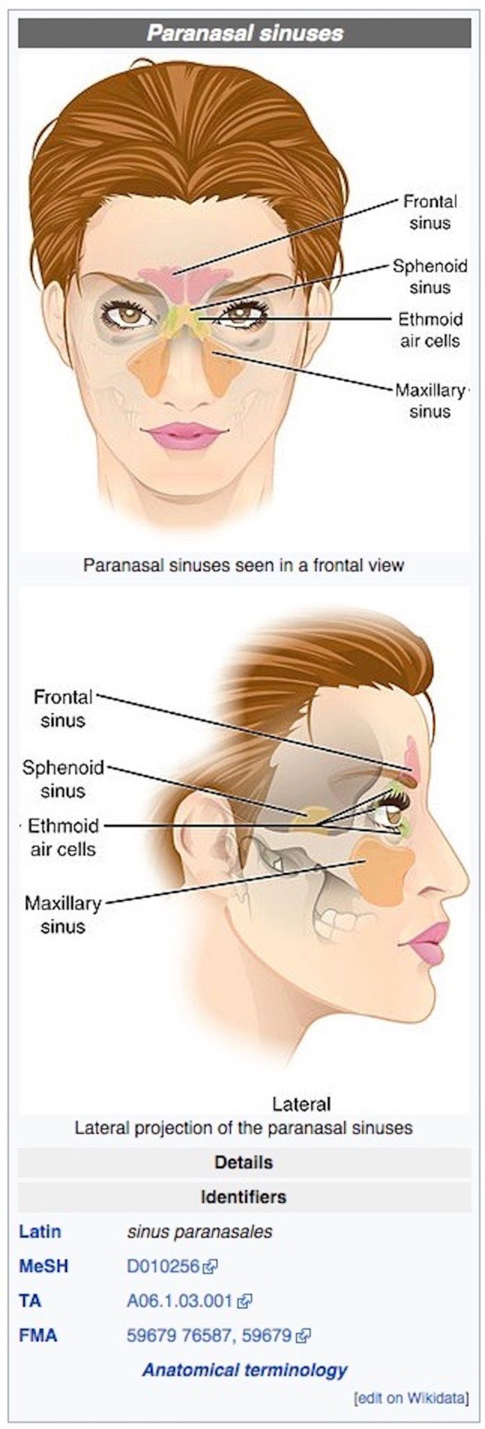 A picture on Wikipedia’s “Paranasal sinuses” page shows the four different paranasal sinus cavities — one of which is the maxillary sinus: