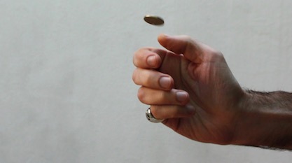 Under Bell’s theorem, the mechanics of coin flipping is no longer applicable to quantum mechanics. In the quantum world, I can flip the same coin under the exact same conditions and sometimes heads will result and sometimes tails, without any factor in the universe determining the result.