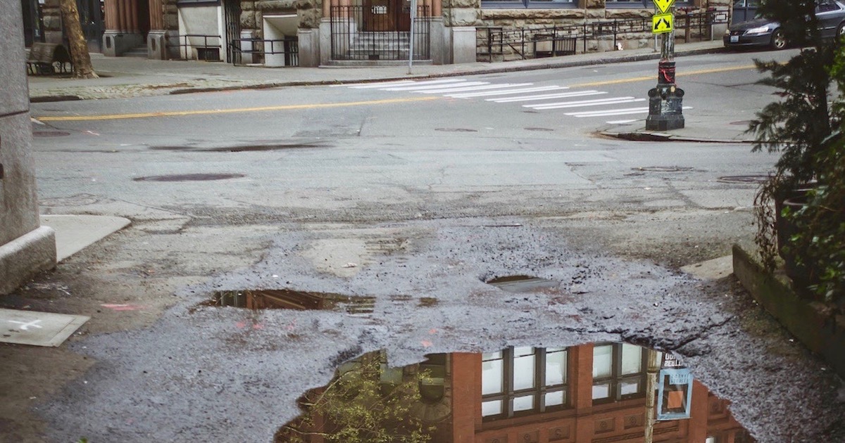 Photo: Seattle’s Pioneer Square neighborhood, home of Discovery Institute (which to be candid is not actually shown in this evocative photo), by Luka Reedy via Unsplash.