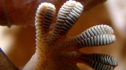 Photo: A gecko displays its superbly designed toes, by Bjørn Christian Tørrissen [CC BY-SA 3.0 or GFDL], via Wikimedia Commons.