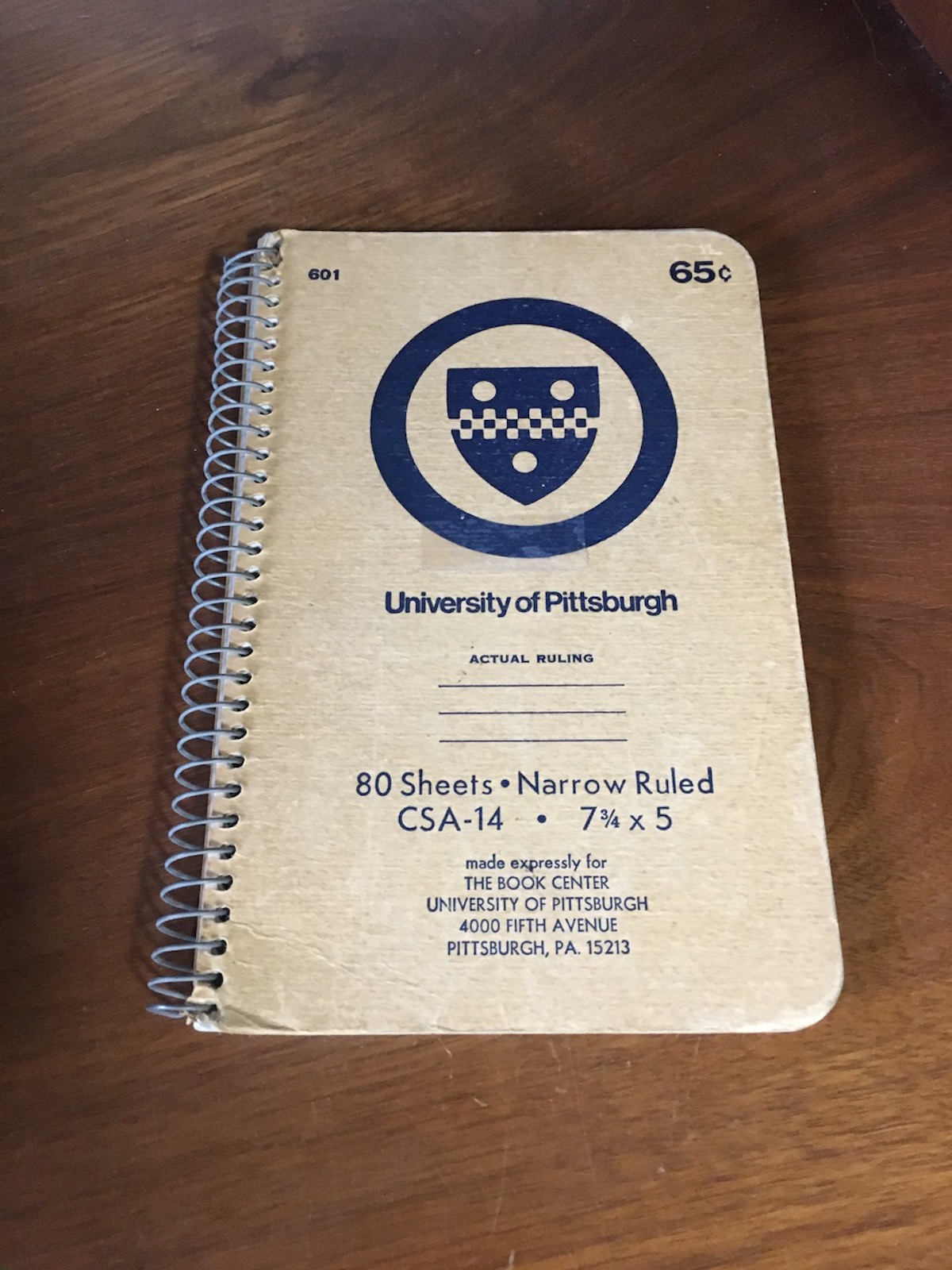 Paul’s notebook from science and religion course taught by Professor Adolf Grünbaum.