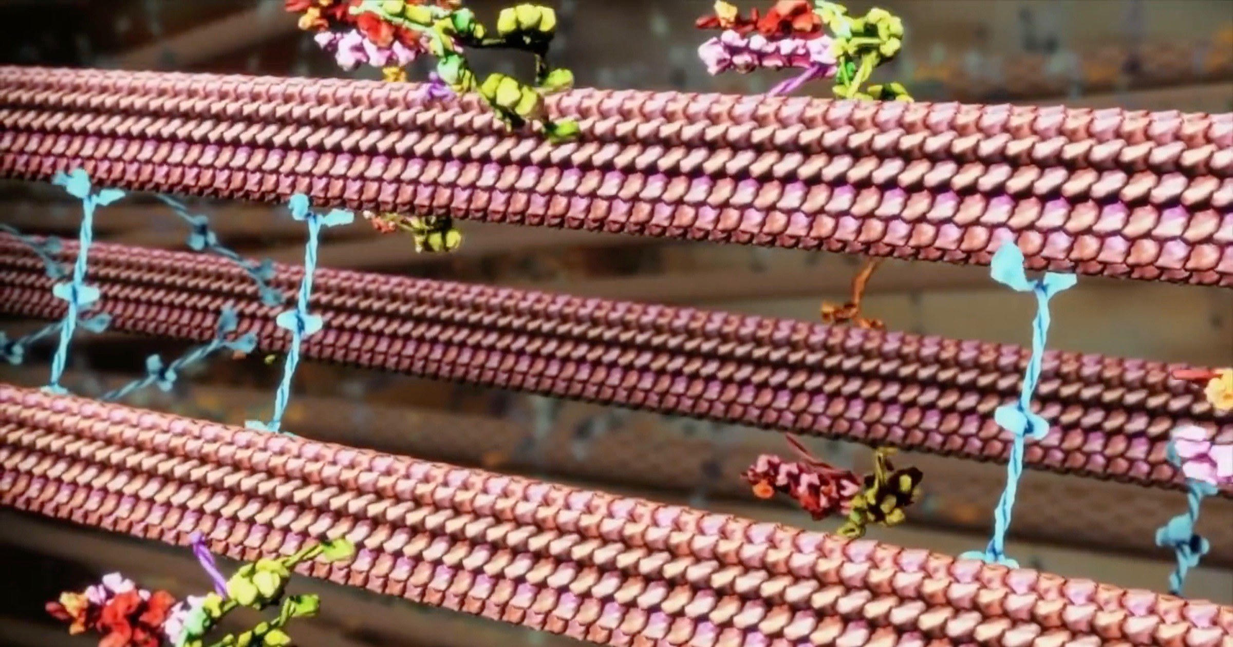 There are also incredible animations of cell replication, showing how microtubules connect to chromatids at the kinetochore, which then pull the sister chromatids apart into the newly dividing daughter cells during replication. It’s all controlled by a complex system of cell signaling. And there are other molecular machines as well, such as dynein machines walking along microtubules — tall enough to step right over kinesin molecules going in the opposite direction.