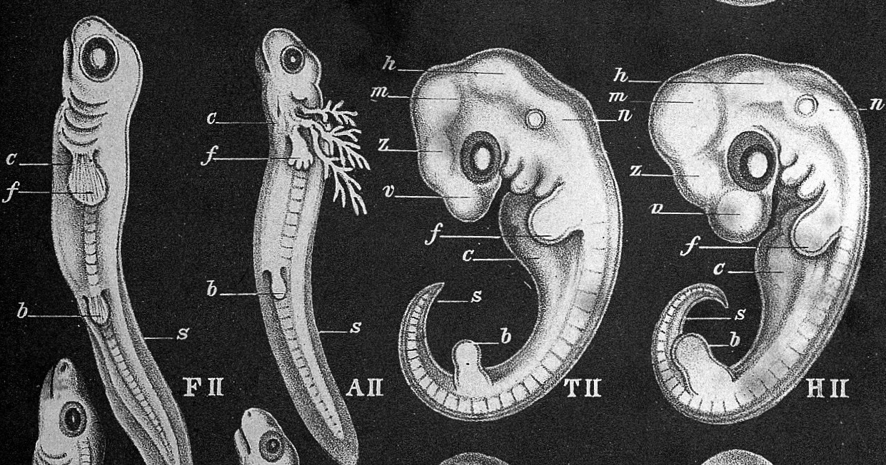 Max was referring to recapitulation theory, popularized in 1866 by the influential German biologist Ernst Haeckel — a follower of Charles Darwin. The theory holds that the development of an organism (ontogeny) replays (recapitulates) its evolutionary history (phylogeny).