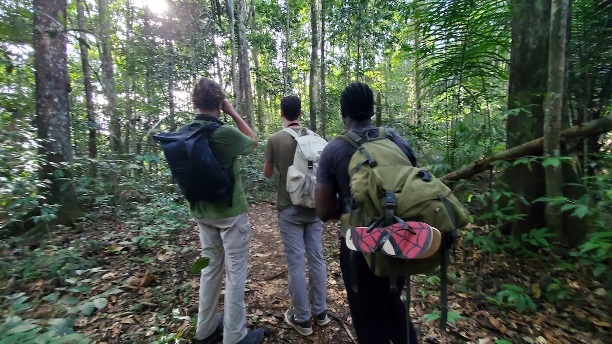Literally 2 minutes into the hike, our guide Calvin stops and squints up at a tree, then walks off the trail. We asked him what happened and he said he thought he saw some kind of hawk, but he wasn’t sure. We followed him and were trying to get a good view of it, but no one was really sure of what we were looking at.