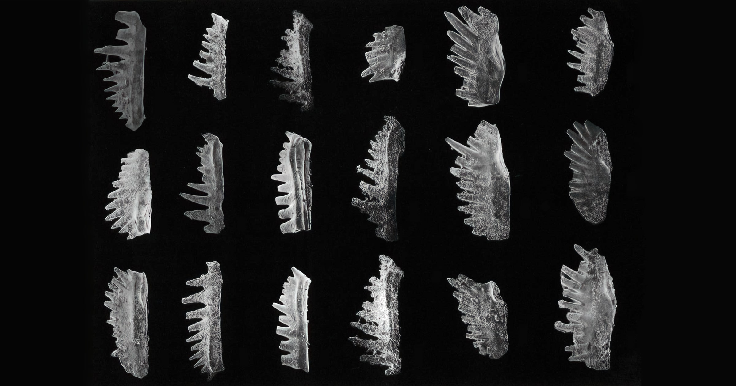 This Fossil Friday features conodont microfossils from the Triassic of the Himalaya region in India (Goel 1977) to illustrate a veritable crime story. You may have heard of cases of fraud in paleontology such as the famous hoaxes of Piltdown Man and Archaeoraptor, but the greatest scientific fraud of the century is not so well known outside of professional paleontologist circles. It was Indian scientist Vishwa Jit Gupta, professor of geology at Panjab University, who played the “star role” in this biggest case of fraud in paleontology and maybe all of science ever (Lewin 1989).
