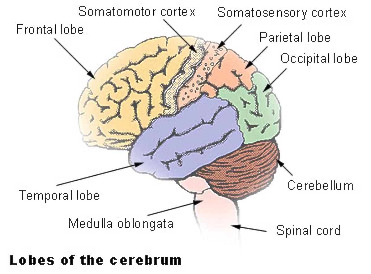 The cerebellum (also labelled in the figure above) is the part of the brain responsible for regulating coordination and motor control, operating largely below the level of consciousness. This means that many of its functions occur without our awareness. The cerebellum receives input from multiple sensory systems, including the proprioceptive system (information about the body’s position and movements), the vestibular system (balance and spatial orientation), and the visual and auditory systems. These inputs help the cerebellum establish a sense of where the body is in space and how it is moving. The cerebellum also receives information from the motor cortex, which provides “efference copies” of the motor commands sent to muscles. Efference copies are predictions of the intended motor output and are used to compare with the actual sensory feedback. This comparison helps the cerebellum detect any discrepancies between the intended and actual movements. The cerebellum acts as an integration center for sensory and motor information. It constantly compares the efference copies with the incoming sensory feedback, such as proprioceptive signals from stretch receptors and Golgi tendon organs, as well as visual and vestibular input. This comparison occurs at the subconscious level, allowing the cerebellum to detect errors in movement even before they become apparent to the conscious mind.