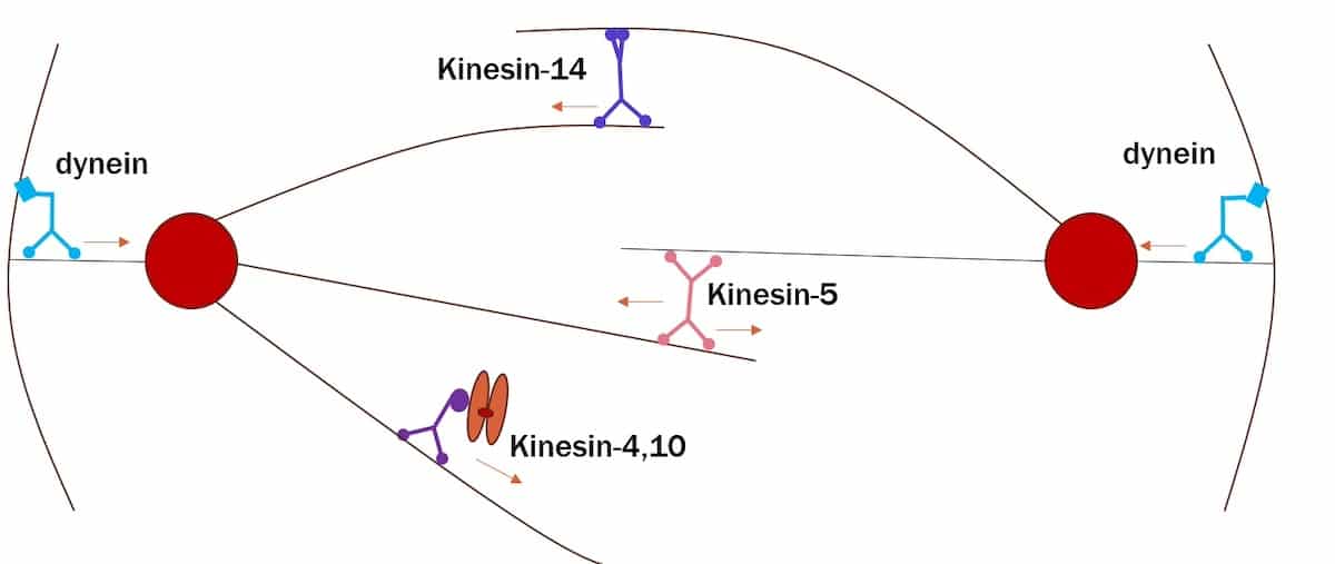 Another group of kinesins, kinesin-4 and kinesin-10 (collectively known as chromokinesins), play a critical role in the positioning and segregation of chromosomes during mitosis.8 The job of chromokinesins is to move the chromosomes to their proper positions such that each daughter cell will receive the right number of chromosomes.