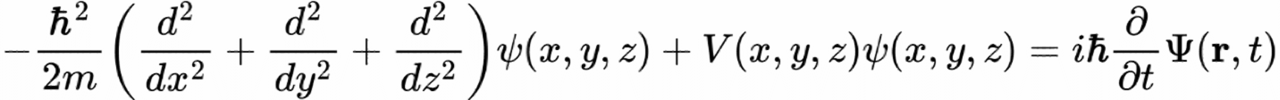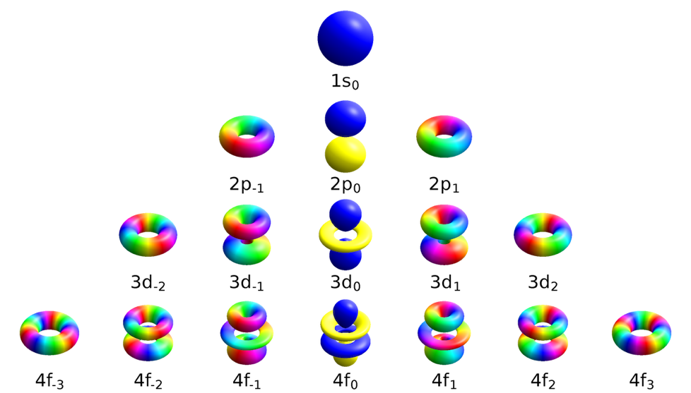 One of the fundamental laws governing quantum mechanics is expressed by Schrödinger’s equation (Figure 2). In atoms, it determines the electrons’ orbitals, which represent the probability distribution of their locations around the nucleus (Figure 3). The equation includes second-order spatial derivatives (x, y, and z), a first-order time derivative, and an imaginary number (i). No one would have expected an equation governing the real world to have an imaginary term. Yet this exact form is essential for the existence of orbitals, which enable the chemistry that supports life.