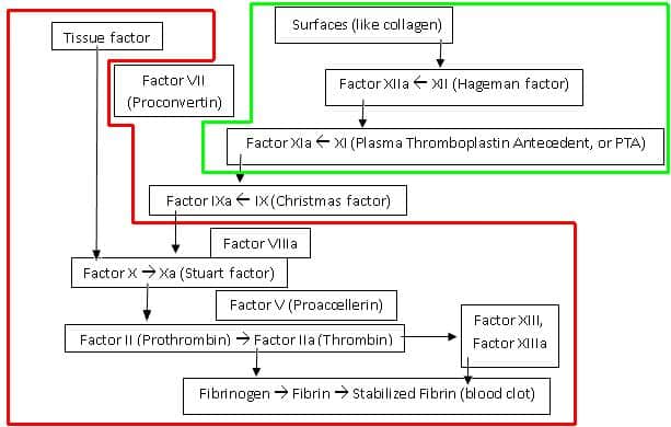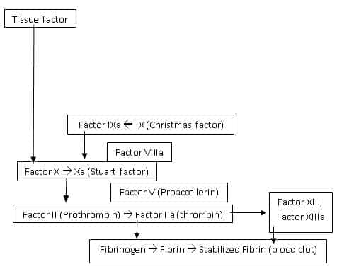Figure 3: Components that Michael Behe argued comprised the irreducibly complex core of the blood-clotting cascade: