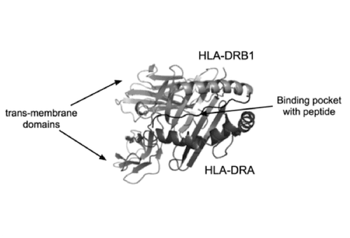 HLA-DRB1 is located in the human leukocyte antigen (HLA) complex. Most of the genes that encode the proteins involved in immune defense are located here. Some of these genes are highly variable in sequence, with hundreds of alleles each.