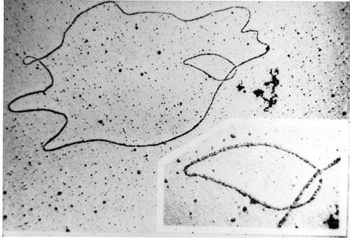 Image: DNA under electron microscope, by SeanMack at en.wikipedia [Public domain], via Wikimedia Commons.