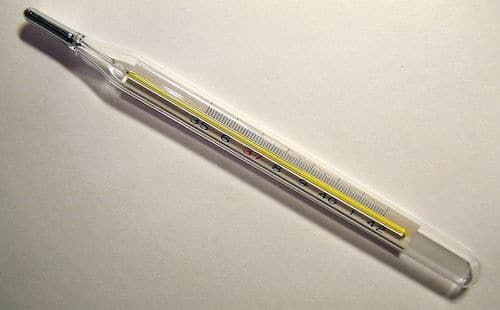 Image: Mercury-in-glass thermometer, by Menchi (Own work) [GFDL or CC-BY-SA-3.0], via Wikimedia Commons.