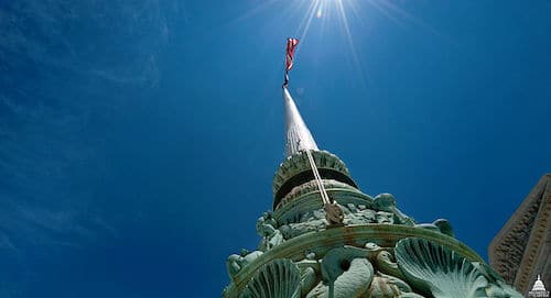 Flag pole outside U.S. Supreme Court Building, by USCapitol [Public domain], via Wikimedia Commons.