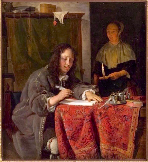 Image: “Young Man Writing a Letter,” by Gabriël Metsu [Public domain], via Wikimedia Commons.