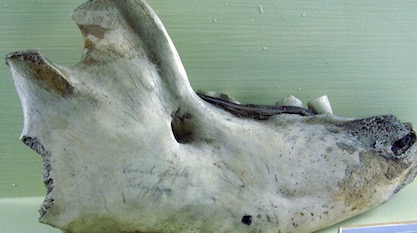 Photo: Mylodon darwinii, lower jaw, Natural History Museum, Berlin, by FunkMonk [CC BY-SA 3.0 or GFDL], from Wikimedia Commons.