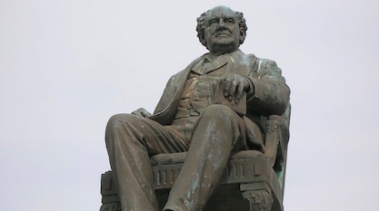 Photo: Statue of P.T. Barnum, Bridgeport, CT, by Msact [Public domain], via Wikimedia Commons.