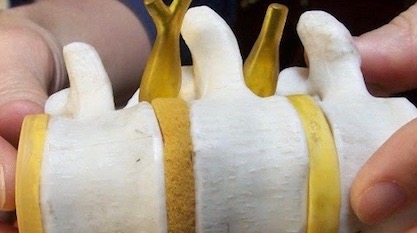 Some 400 to 500 million years ago, according to the standard evolutionary account, an unknown living species with nerves running down its front changed into a new species with nerve tracts running down the back. That’s quite a jump. To protect the nerves, these tracts were housed inside new, bony structures, the vertebrae. Not only was specific bone added, but it was appropriately shaped, lined up, able to twist and bend, with the individual vertebrae protected from banging against each other.