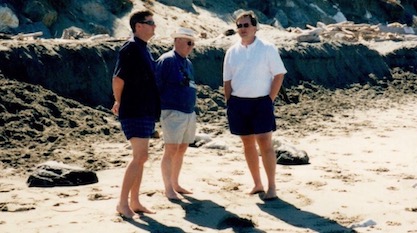 Photo: John Mark Reynolds, Phil Johnson, and Paul Nelson, Pajaro Dunes, California, June 1998, by Suzanne Nelson.