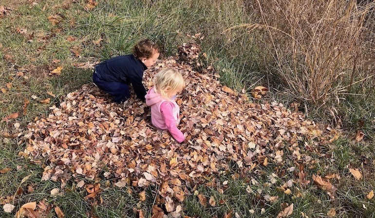 Photo: Playing in a pile of fallen leaves, by Dion Hinchcliffe, via Flickr (cropped).
