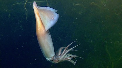 Photo credit: Humboldt squid (Dosidicus gigas), © 2010 MBARI via EurekAlert!