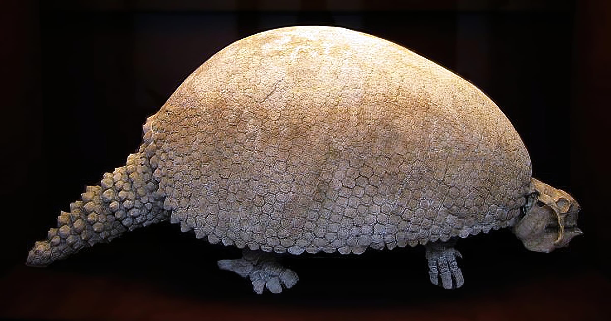 This Fossil Friday we continue our series on the origins of the various modern placental mammal orders. Our subject today is the order Xenarthra, which is endemic to the New World and divided into two suborders, Cingulata (armadillos and their extinct relatives, pampatheres and glyptodonts) and Pilosa (sloths and anteaters). Both suborders include examples of the extinct Pleistocene megafauna of America. The suborder Pilosa includes the giant ground sloths like the genus Megatherium, and the suborder Cingulata includes the car-sized giant armadillos of the genus Glyptodon. A complete skeleton of Glyptodon asper from the Pleistocene of Argentina is featured at the top of this article. This specimen is on display at the Natural History Museum of Vienna. With an age of only 1.5 million years it is very far from being the oldest representative of this order. A recent review article by De Iuliis (2018) commented that: