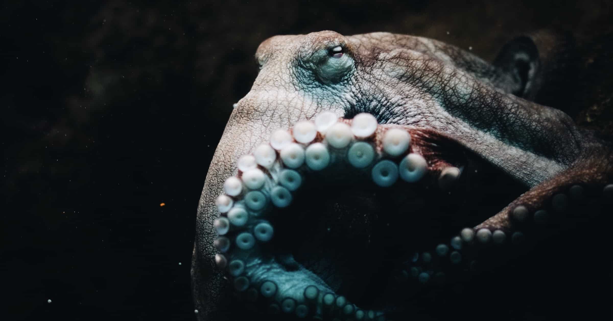 An octopus’s remarkable intelligence makes it a unique subject for marine biologists and neuroscientists as well. Research has revealed the brain power of the octopus allows it to unscrew a jar or navigate a maze. But, like many children, the octopus also develops an impish tendency to push the boundaries of behavior. Several aquariums have found octopuses memorizing guard schedules to sneak into nearby tanks to steal fish; meanwhile, marine biologists have discovered that wild octopuses will punch fish… for no apparent reason.