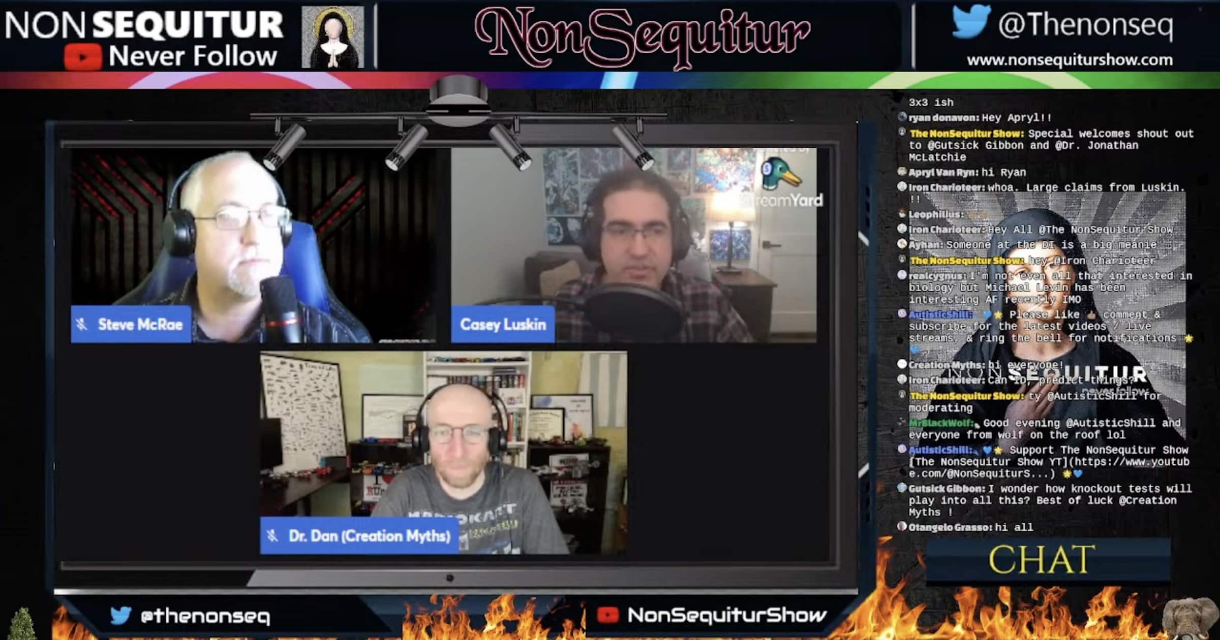 Dr. Dan, with a YouTube channel called Creation Myths, doesn’t at first sound as if he’d be a likely partner for a classy, respectful, and substantive debate with an intelligent design proponent. That was my thought, anyway, when I first heard of him. But I was wrong! Dr. Dan is actually a Rutgers University biologist, Professor Dan Stern Cardinale, who debated geologist Casey Luskin last night for more than two hours on The NonSequitur Show, another YouTube channel, hosted by Steve McRae. The subject of the discussion: “Is the Human Genome Largely Junk DNA?”