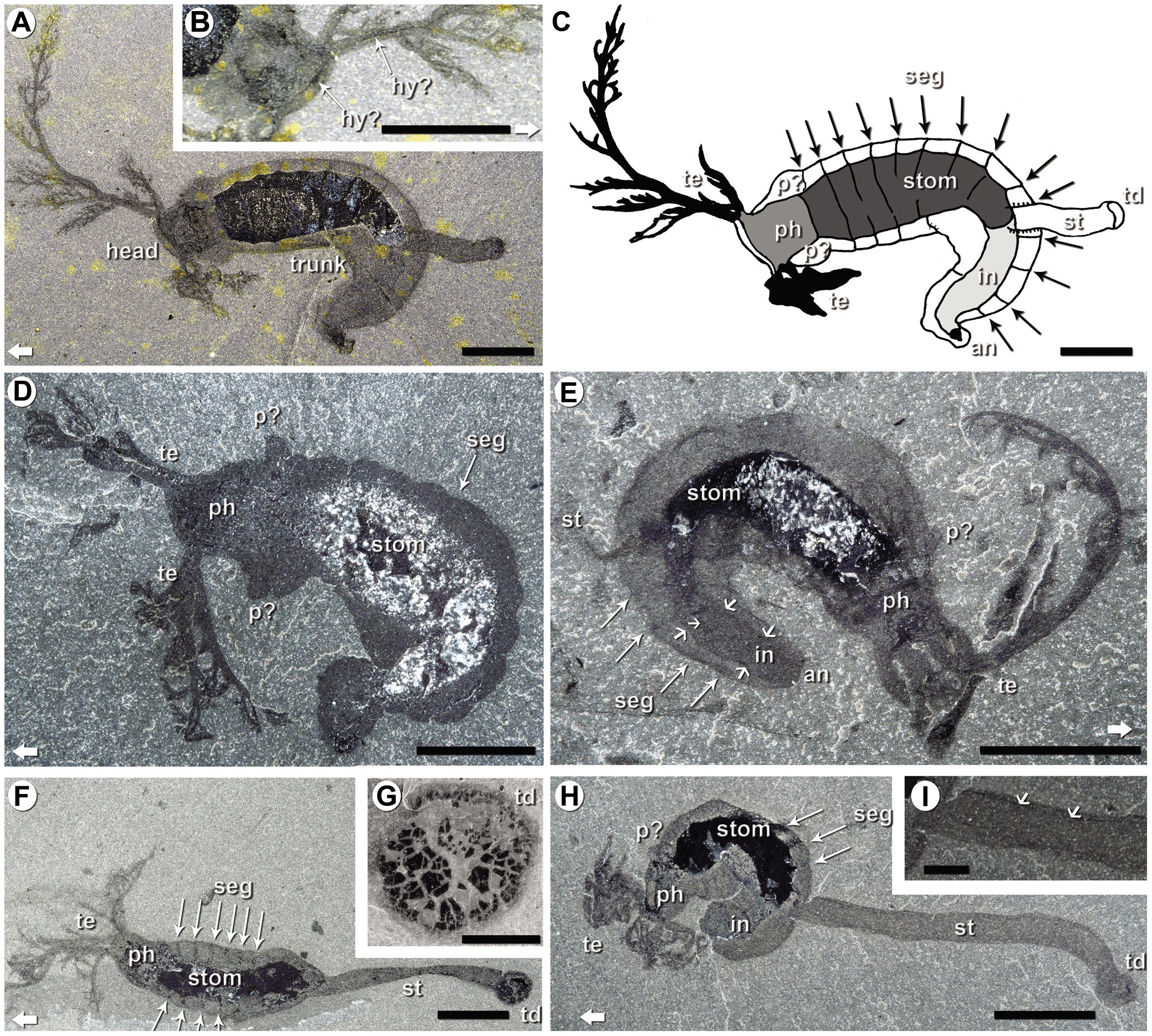 - Caron J-B, Conway Morris S & Shu D 2010. Tentaculate Fossils from the Cambrian of Canada (British Columbia) and China (Yunnan) Interpreted as Primitive Deuterostomes. PLoS ONE 5(3): e9586, 1–13. DOI: https://doi.org/10.1371/journal.pone.0009586