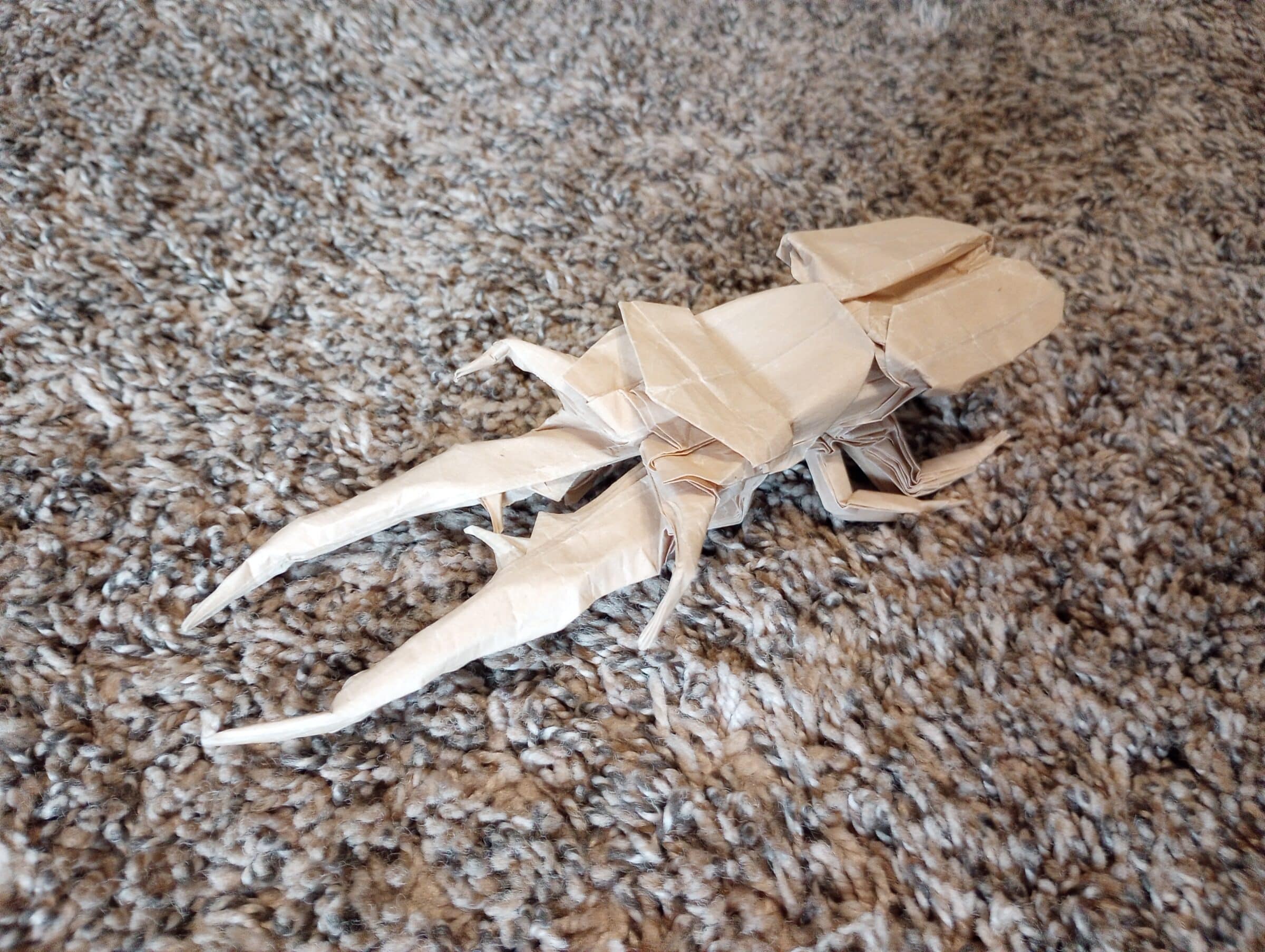 Now, one of my children makes complex and realistic origami critters that require close to 200 steps. The image at the top, in fact, is an origami Cyclommatus metallifer beetle made by Isaac Gonzalez. The design is from Works of Satoshi Kamiya 2. It has 184 steps and is classified as complex (the highest rating is super complex).