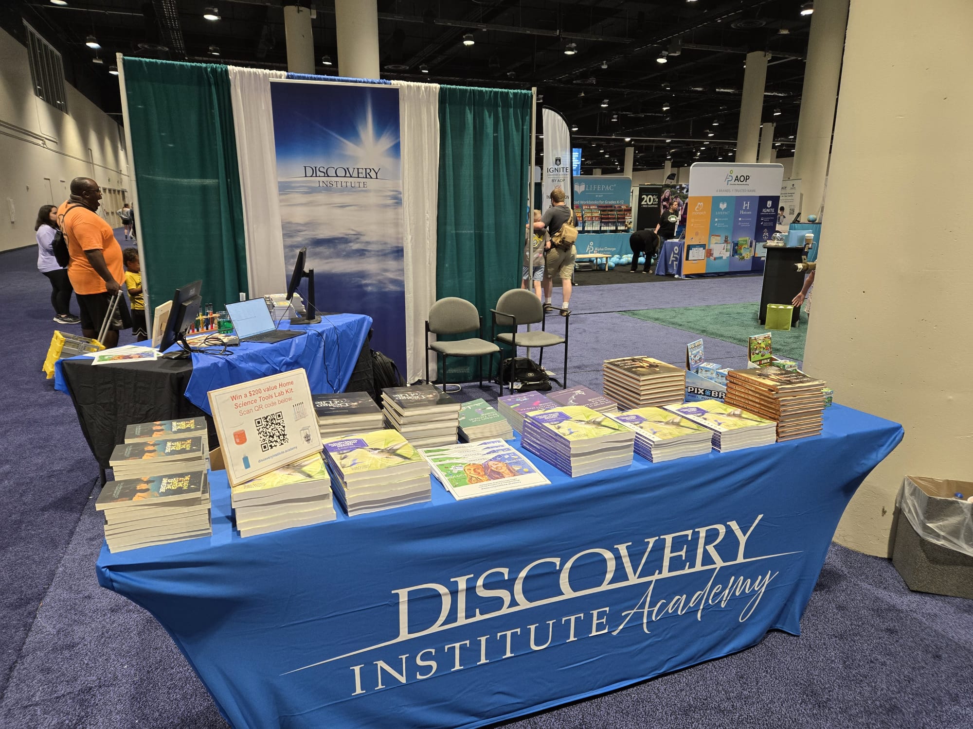 It’s where a wide range of homeschool-related programs from across the country come to exhibit and promote their materials. For the first time ever, Discovery Institute Academy was there, hosting a booth to discuss our chemistry and biology courses and to share some of our fantastic materials with homeschool families such as the Discovering Intelligent Design curriculum or the fun graphic novel The God Proofs.