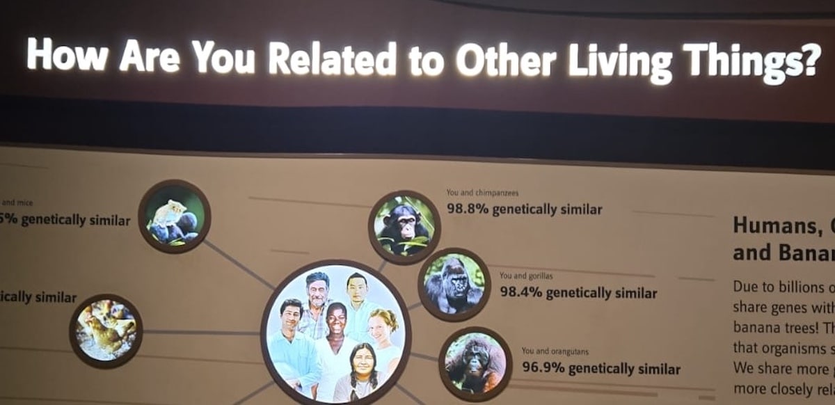 Editor’s note: Dr. Casey Luskin broke the bombshell story last week that, according to data in a new paper in the journal Nature, the human and chimpanzee genomes are not a mere 1 percent different, as you so often hear from science media and science educators, but more like 15 percent different. What we’ve called at Evolution News the “1 percent myth” (see the series here) is thus an icon of evolution that has dramatically tumbled. The story had to be “broken” by us because the editors at Nature had chosen to bury the relevant information (why?) under mounds of arcane technical jargon in the paper’s Supplemental Data section. Unfortunately, the 1 percent myth is promulgated as fact at, among other places, the nation’s own Smithsonian Institution. Dr. Luskin today sent this letter to three influential people at the Smithsonian’s National Museum of Natural History — Dr. Kirk Johnson (Sant Director, National Museum of Natural History), Dr. Lonnie G. Bunch II (Secretary, Smithsonian Institution), and Kate Forester (Deputy Chief of Staff to the Smithsonian Board of Regents) — complete with photos of the relevant signage.