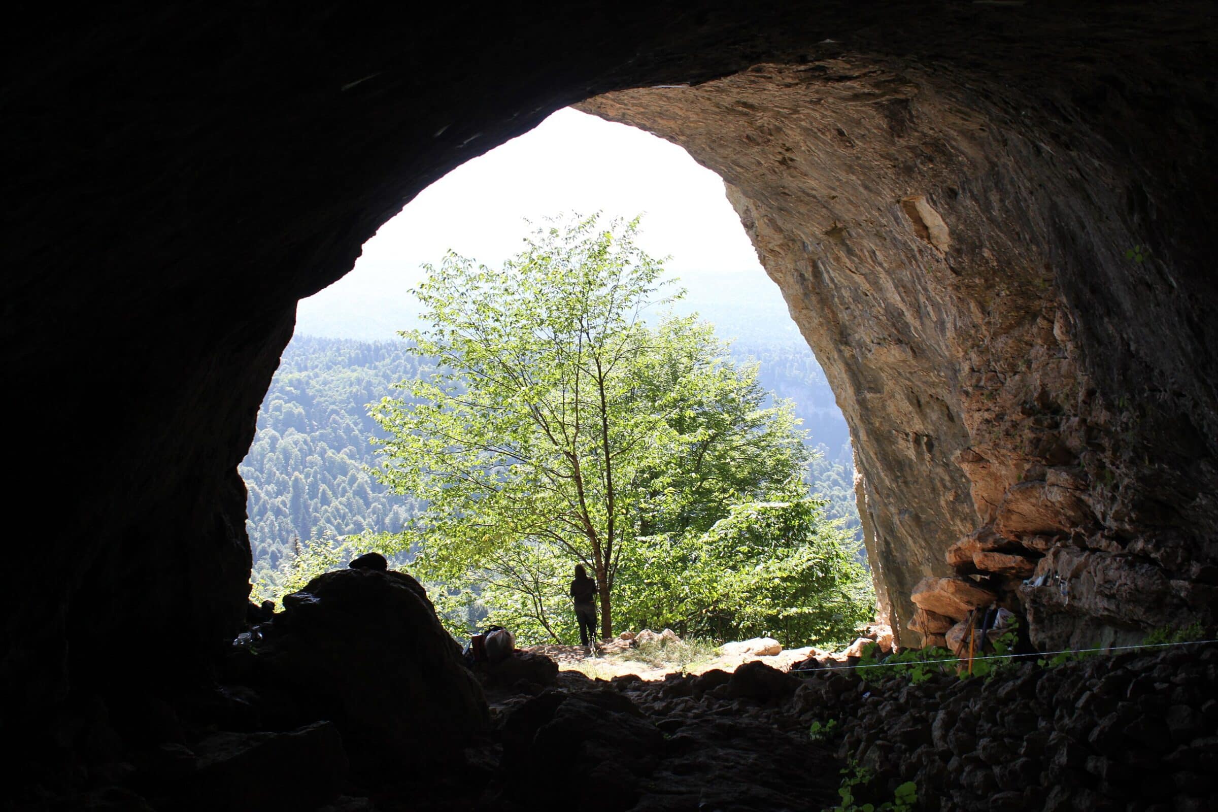 The bone tip was found in Mezmaiskaya Cave (pictured at the top) in the Caucasus Mountains. From the paper’s Abstract: