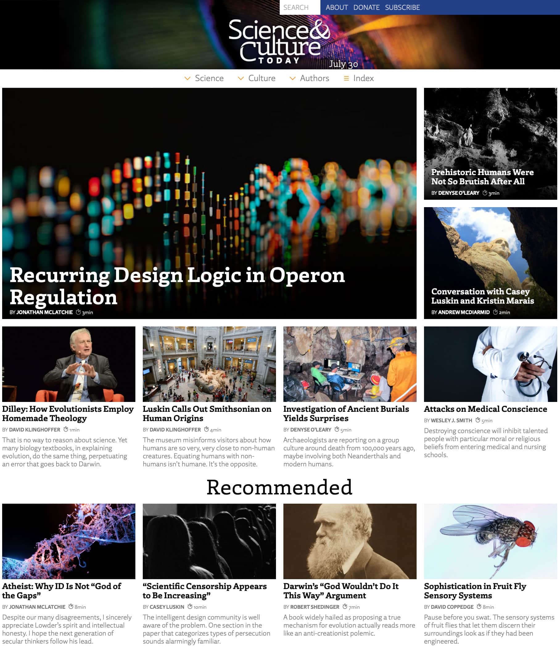 As the Center’s flagship publication grew into much more, it was redesigned in 2006, in 2011, and most recently in 2017, this time bearing an addended name reflective of its broader scope: Evolution News and Science Today. In 2025, the webpage turns to yet another chapter with a redesign, new features, and again, a more expansive name indicative of its breadth and depth: Science and Culture Today. Though old links will continue to work indefinitely, its new home is scienceandculture.com.